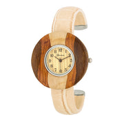 ShineHigh Brenna Beige Wood Inspired Leather Cuff Watch